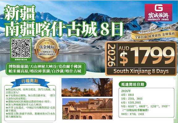 【真金纯玩】ZGM 新疆南疆喀什古城8日-博斯腾莲湖/天山神秘大峡谷/克孜尔千佛洞/帕米尔高原/喀拉库里湖/白沙湖/喀什古城
