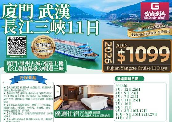 【超值精选】ZGM 厦门武汉长江游轮11日- 厦门/泉州古城/福建土楼/武汉长江游轮阳台房畅游三峡
