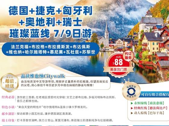 【欧洲环游线-璀璨蓝线】德国+捷克+匈牙利+奥地利+瑞士五国7日/9日游